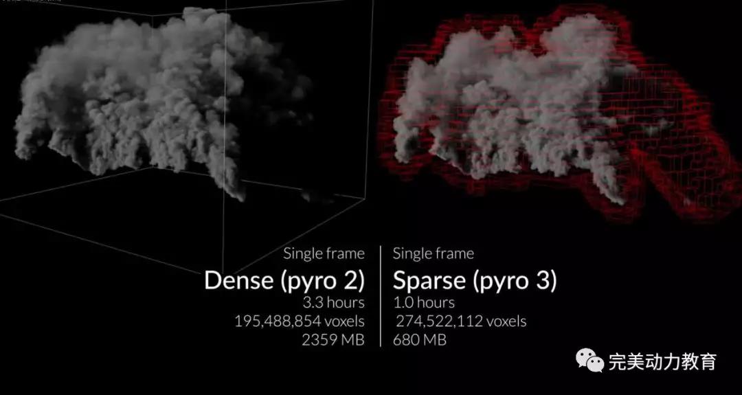 增加了稀疏體積解算,可以極大節(jié)省系統(tǒng)資源——制作大面積煙火,以前都需要分割流體框,以避免單個流體框浪費太多資源。