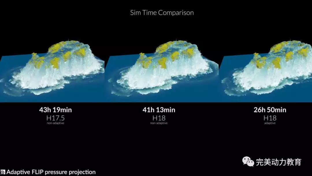 FLIP流體引入一個新的概念——適應性的壓力投射,這個功能可以提升70%多的解算效率。