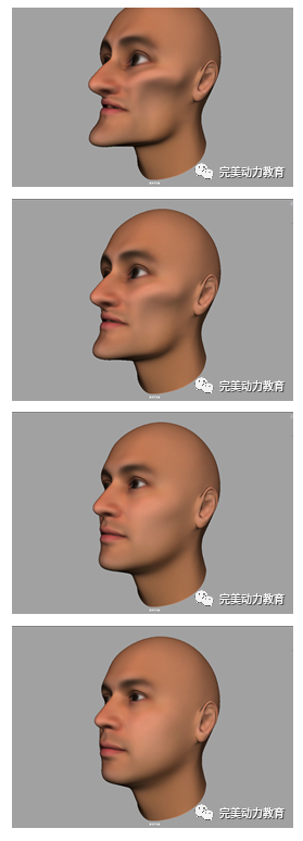 將以上操作步驟做好后,在Maya下播放動(dòng)畫,我們可以看到一個(gè)人頭變形動(dòng)畫就做好了。在這之后,我們就可以制作角色表面以針刺狀凸起再回落的動(dòng)畫效果了。