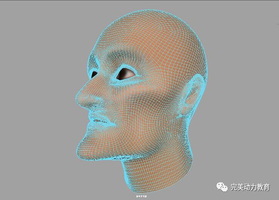 程序“select -rskin_b.f[0:22983];”執(zhí)行之后,回到場(chǎng)景視圖中。我們可以看到,人頭模型上,所有向各自中心收縮的面將被選擇。也就是說(shuō),做完建模中的擠出操作后,可以通過(guò)這一句腳本程序選擇擠出前的所有面。這是一種快捷操作。