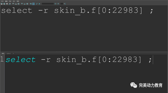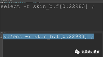 在場(chǎng)景視圖中,選擇人頭模型的所有面。這樣,就會(huì)在腳本編輯器的信息反饋欄中出現(xiàn)一句程序:select -r skin_b.f[0:22983];這句程序就是剛才在場(chǎng)景視圖中選擇人頭模型的所有面對(duì)應(yīng)的程序。后續(xù)操作要用到這一句程序,因此將它復(fù)制粘貼到腳本程序的編輯區(qū)。
