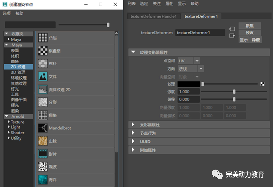 在大綱視圖中,選擇紋理變形器textureDeformer1。
