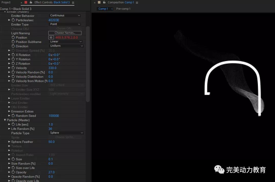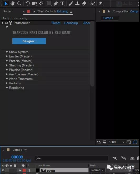 新建一層soild做粒子層,我們利用particular粒子特效制作煙霧部分效果