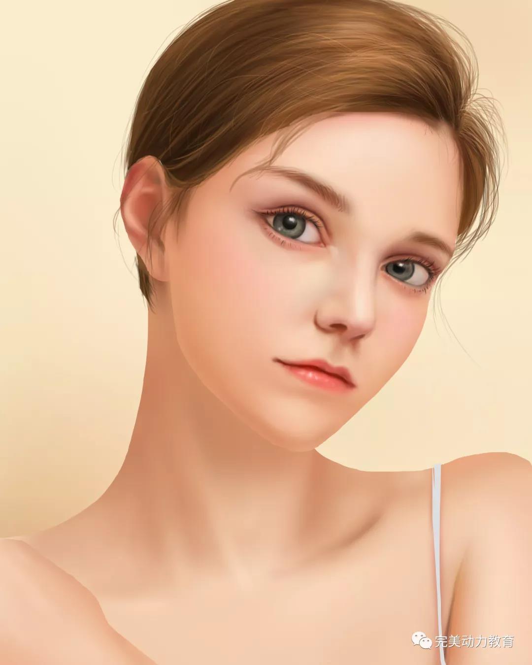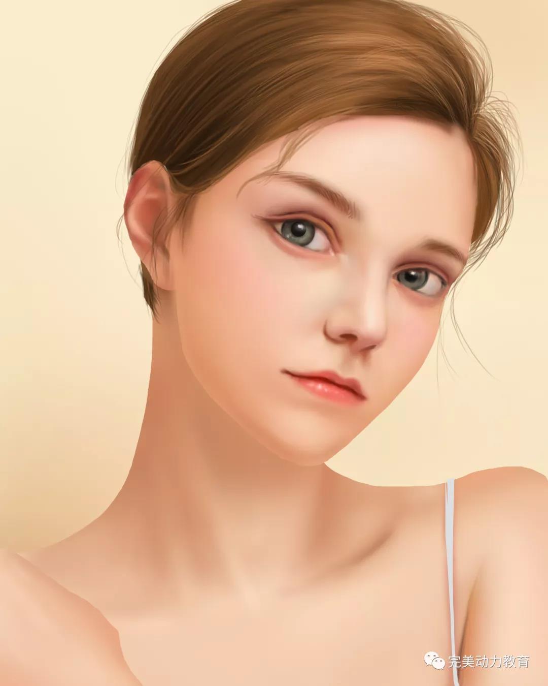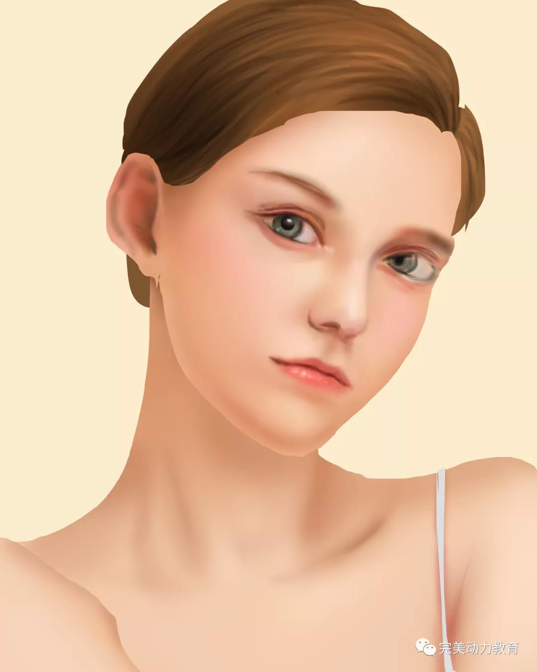 稍稍細(xì)化一下五官的立體度,比如將鼻子、下巴之類的弧度表現(xiàn)得更加清晰,眼睛稍微細(xì)化。