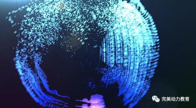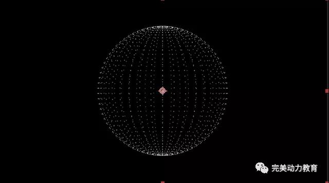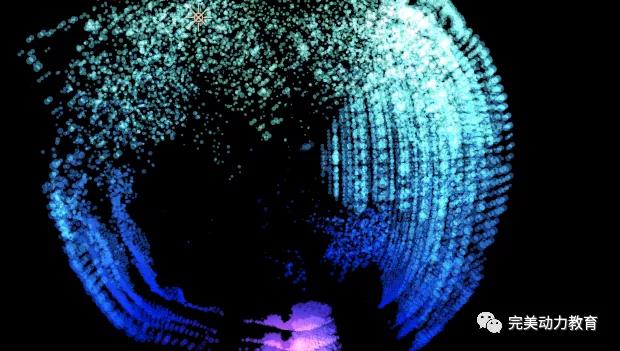 改為圓形以后的畫面效果為下圖 (注意:這是原始效果,同學(xué)們可以根據(jù)自己的喜好調(diào)整球的大小和粒子數(shù)量)。