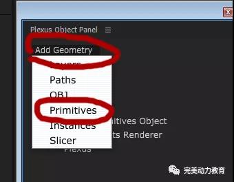 在添加geometry中選擇添加primitive, 并將類型改為圓形;