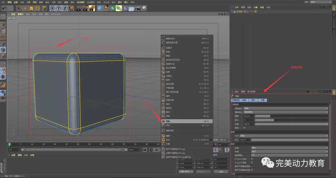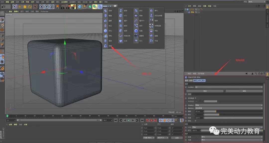 方案一利用倒角工具。先選擇對象,然后添加一個倒角工具,接著調(diào)節(jié)參數(shù),即可完成。