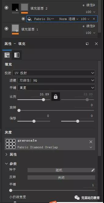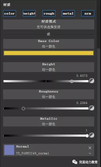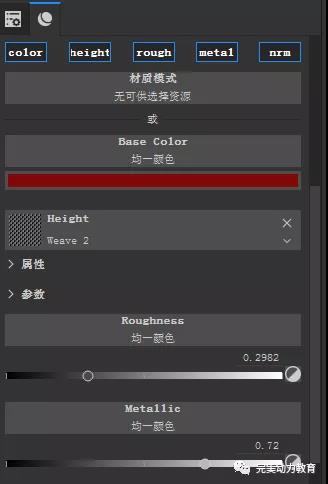 接下來還需要微調粗糙度,但不能太小,否則就會像塑料。也需要開金屬度,否則你是得不到絲綢的那種受光面和背光面強烈的反差的。后面的圖層也都需開金屬度。接下來你要準備兩張黑白貼圖,可以從網上搜索。