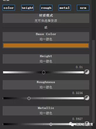 在這一層里我取了一個色橙黃,這樣我感覺更協(xié)調紅色。高度0.01 粗糙度略有提高,金屬度調低了些因為還是底色,不想有太強的反射。然后給了一個黑色mask,然后填充一個我覺得適合做底紋的紋路,如圖: