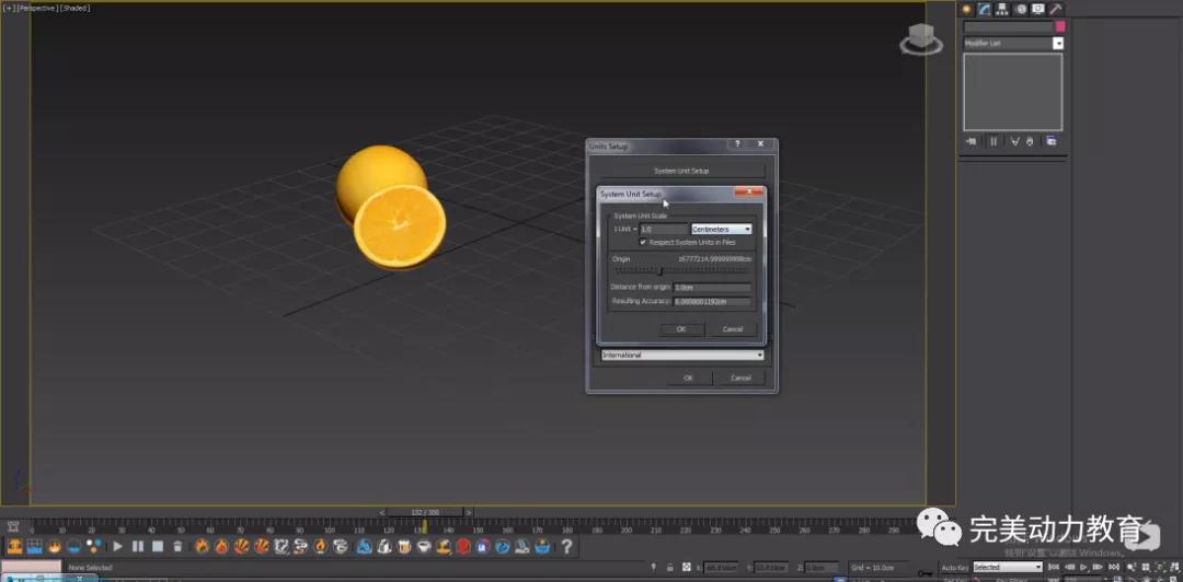 更改系統(tǒng)單位設(shè)置 把單位改成厘米。在這個(gè)場景中我們會(huì)把橙子適當(dāng)?shù)倪M(jìn)行放大,從而來適應(yīng)我們打特寫鏡頭。通常越大尺寸的模擬會(huì)帶來的效果更好,但會(huì)降低模擬速度,所以需要測試找到合適數(shù)值。