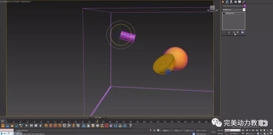 建立圓柱體模型,通過旋轉(zhuǎn)縮放,放置在容器內(nèi)部,它將作為液體發(fā)射器使用。如圖所示: