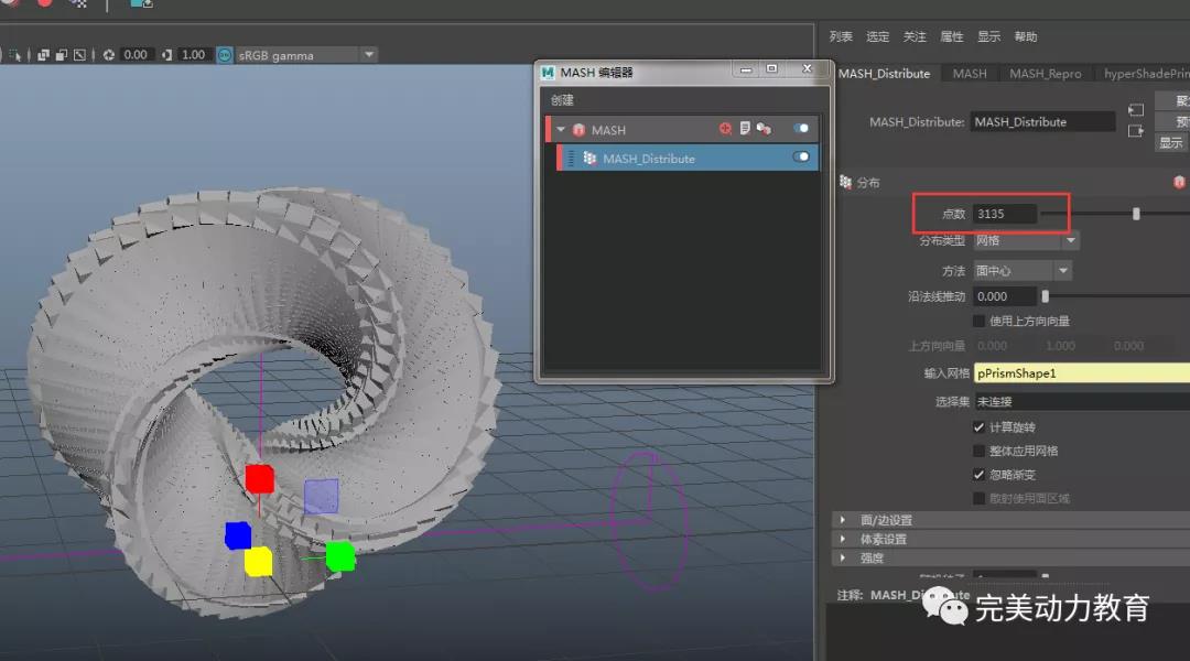 5.查看棱錐上的點(diǎn)數(shù),在Mash Distribute屬性面板中點(diǎn)數(shù)填寫3135;
