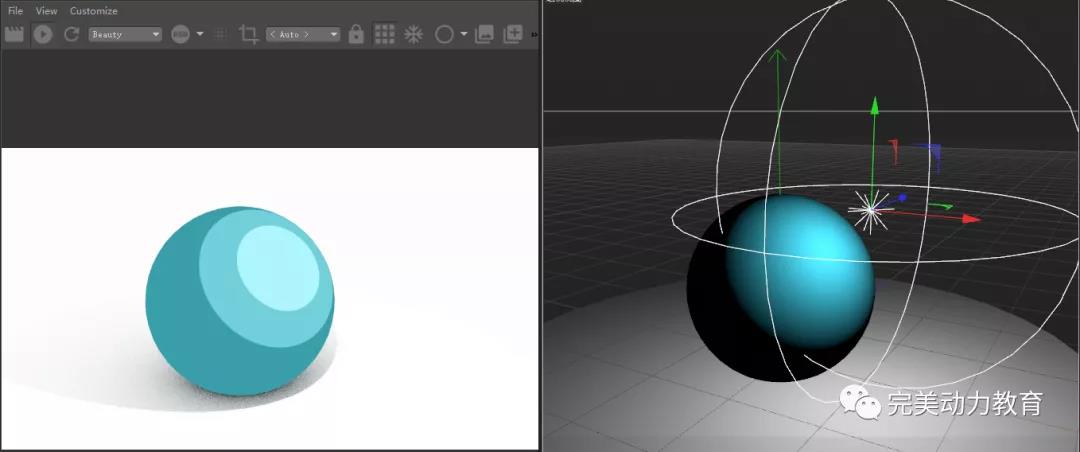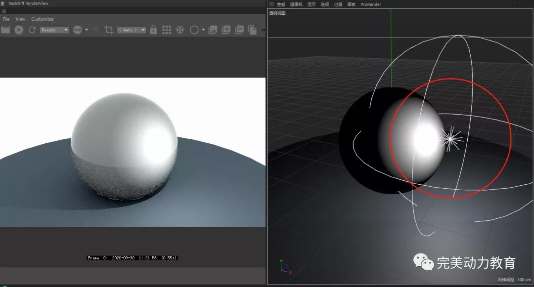 在軟件視圖中創(chuàng)建一個小球與地面,使用點光源進行照明。