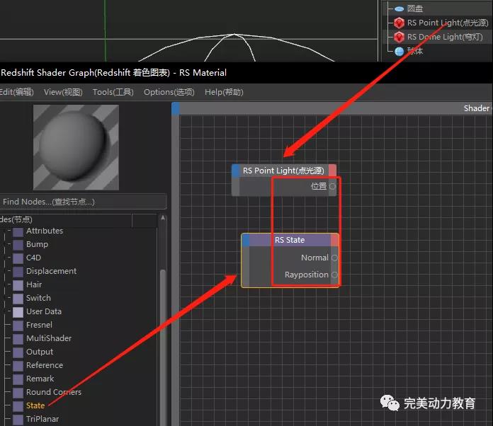 把點光源拖入“節(jié)點編輯器當(dāng)中”,讀取創(chuàng)建燈光位置接口。同時創(chuàng)建讀取模型的法線,與世界位置接口。