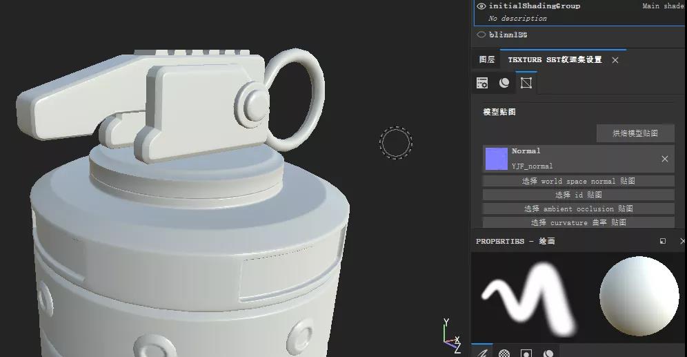 然后在SP中新建一個項目,導(dǎo)入第一步的低模,也就是沒有分離開的低模,并將法線貼圖貼上去。