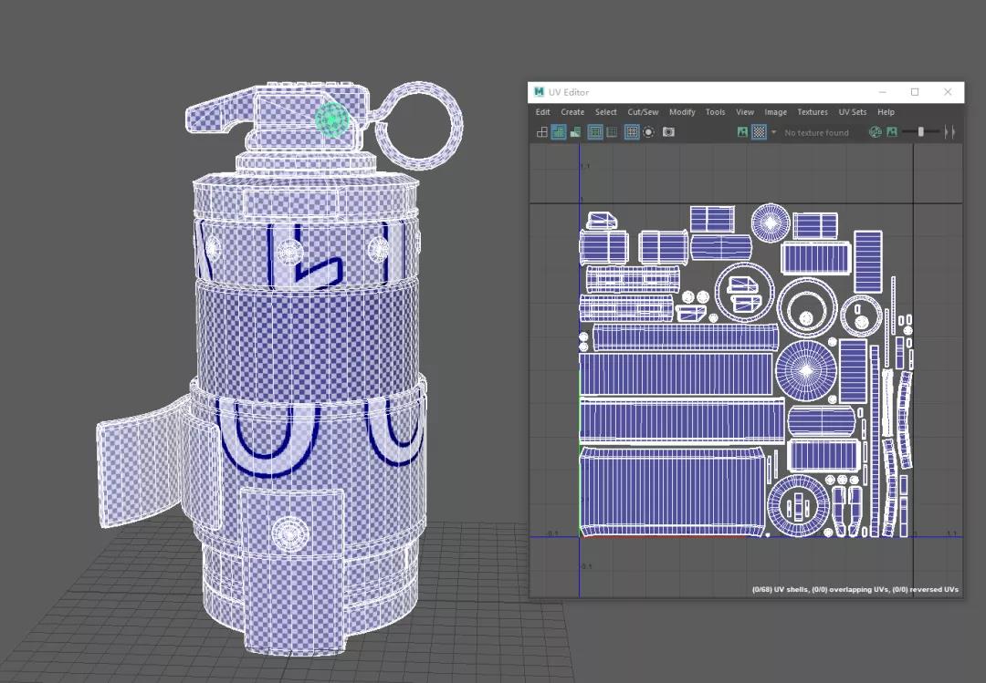 首先,我們在Maya中創(chuàng)建了一個手雷的模型并展好UV。
