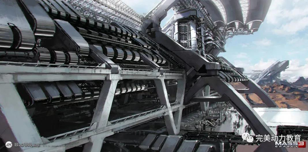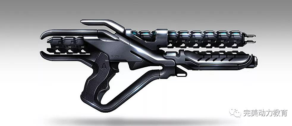 繼續(xù)現(xiàn)有設(shè)計語言或添加自己的想法。從一些科幻建筑中重復(fù)使用的部分提取設(shè)計語言,匹配到武器設(shè)計。比如《質(zhì)量效應(yīng)》這款游戲中,每個外星種族都有自己獨特的風(fēng)格,將建筑中的獨特性在槍支等元素中充分的展示出來。