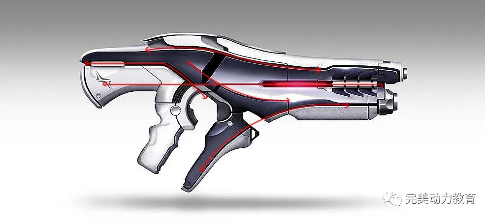 越先進未來感的武器槍支,它們的設(shè)計也越干凈光滑,所以需要把注意力集中在設(shè)計趨勢上,保持線條和接縫的流線性。