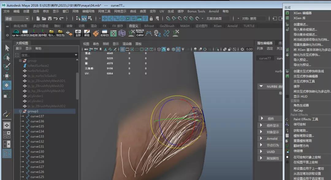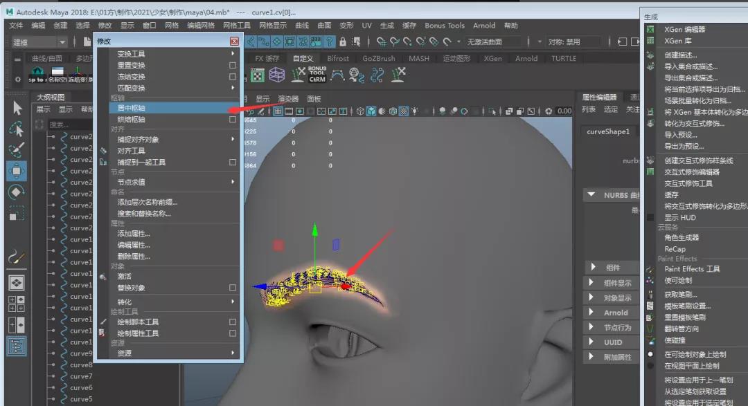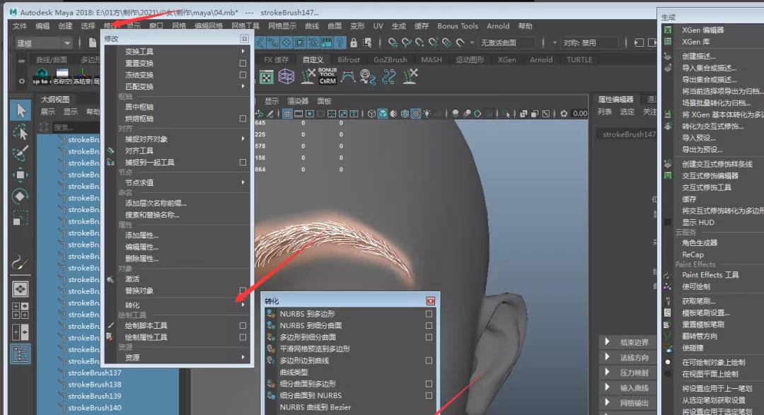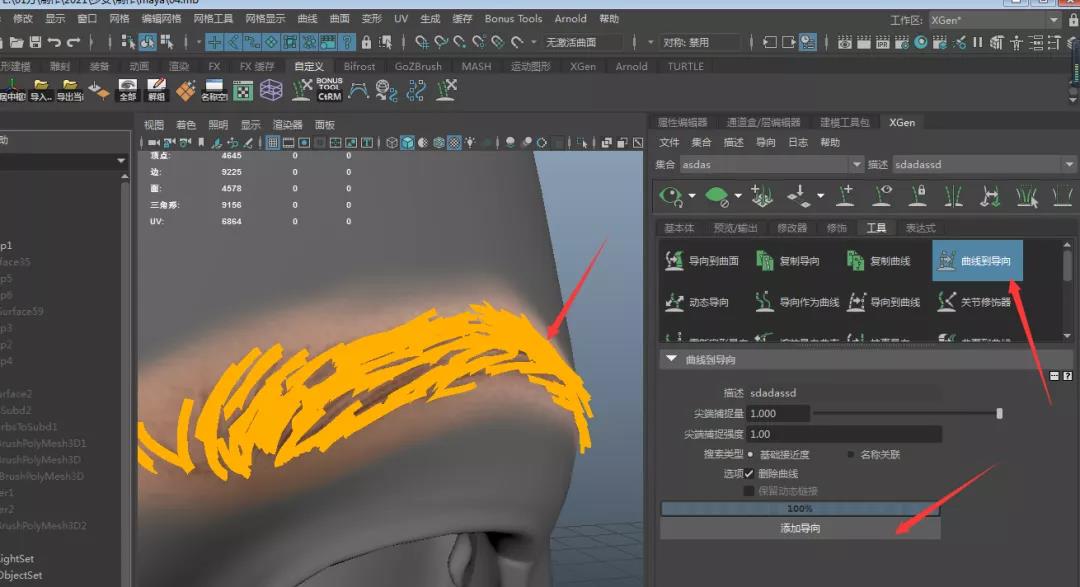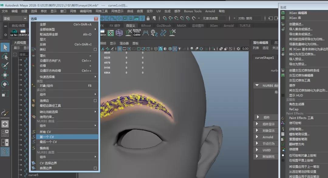 12.點擊XGEN中曲線轉引導線,這樣我們就得到與參考十分匹配的眉毛引導線。