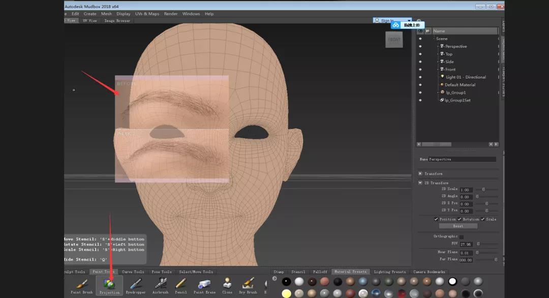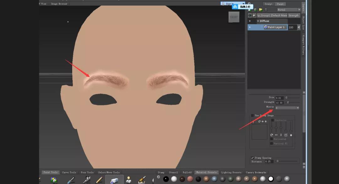02.將模型導入mudbox繪制眉毛。