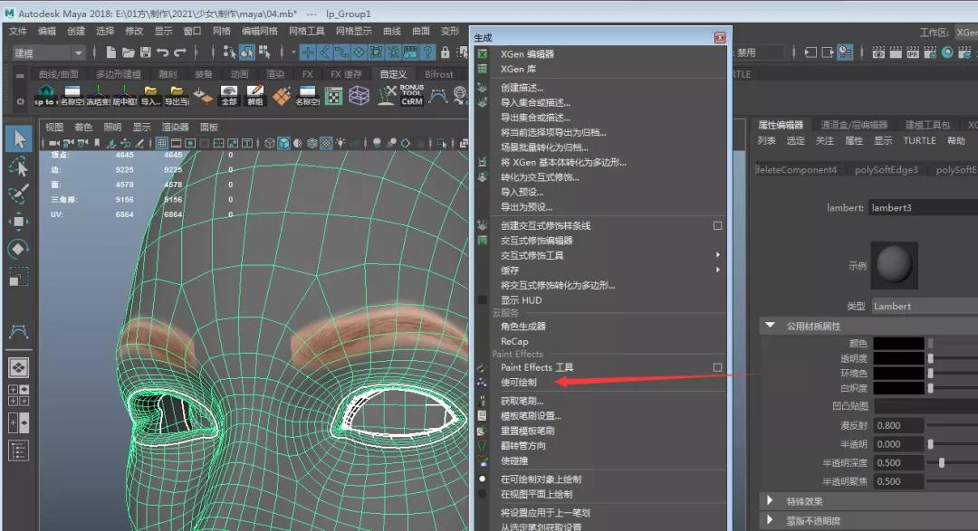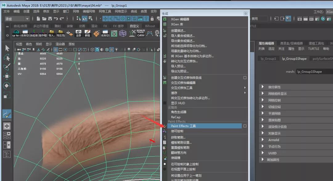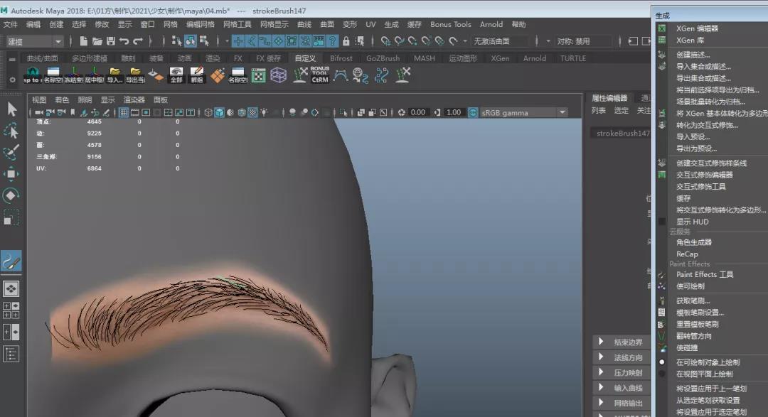 06.點擊生成中Paint Effects工具,按照貼圖來繪制眉毛。