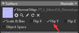 還有一些情況下會發(fā)現(xiàn)normal map貼上去后凹凸是反的,這時候可以勾選Surface里的Flip Y這一個選項。