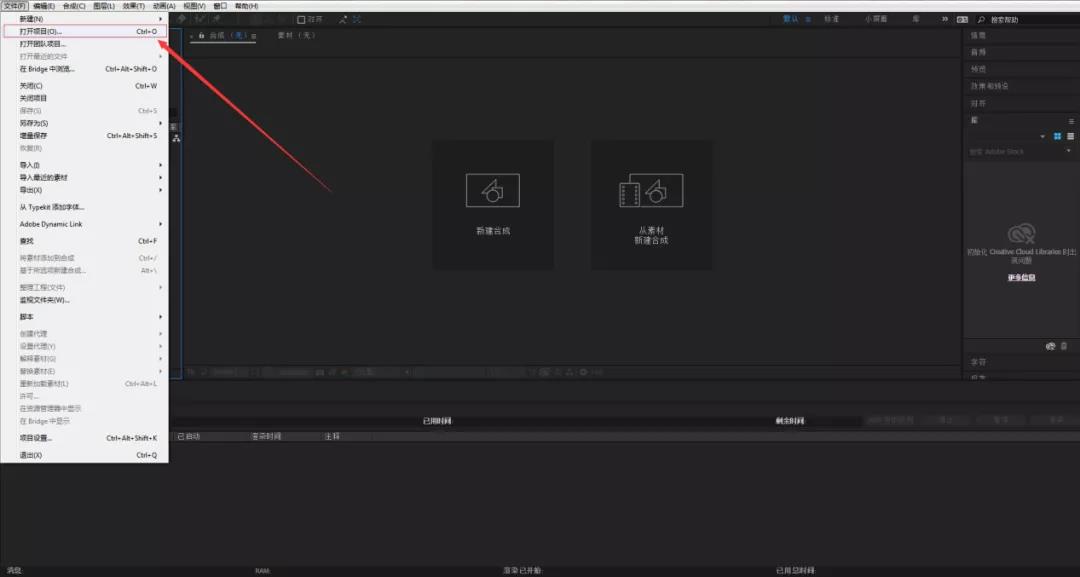一、打開AE,左上角找到文件,打開項(xiàng)目。