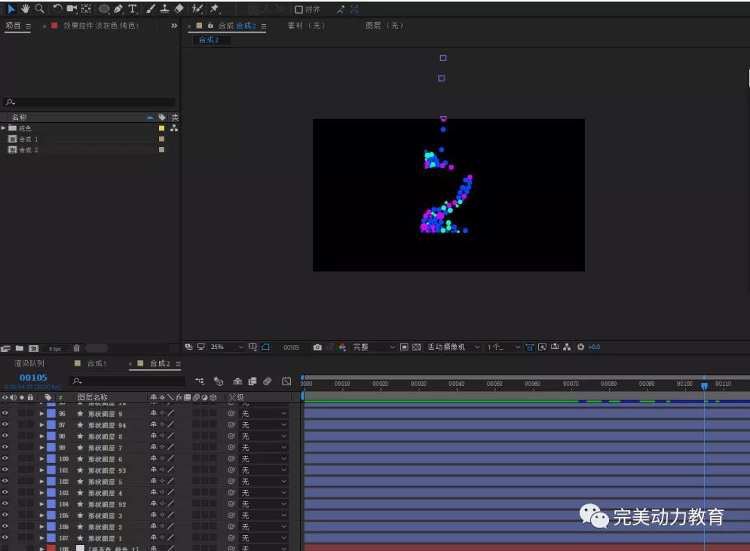 選中所有的圓,把Bounciness碰撞改為0.1,然后點(diǎn)擊播放鍵,預(yù)覽一下效果,如果小球填不滿,就回到AE合成中,把小球數(shù)量增多。如果小球被卡住,可以調(diào)整2的路徑。最后改下輸出的幀數(shù),點(diǎn)擊render輸出,回到AE中打開新生成的合成,即是最終動畫??梢园?的形狀圖層關(guān)掉,添加一個純色背景。這樣就做好了,那么現(xiàn)在你明白要把小球裝進(jìn)數(shù)字總共分幾步了么?