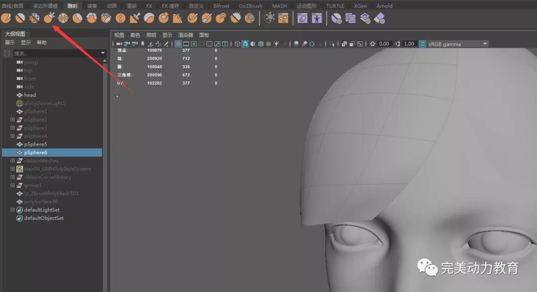 運(yùn)用MAYA雕刻中的移動(dòng)筆刷雕刻頭發(fā)大型