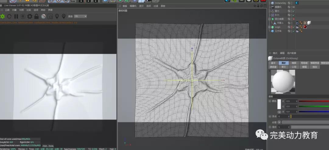 今天我們來做一個(gè)布料吸附的動(dòng)畫和OC渲染器渲染的效果,廢話不多說,就用我們完美動(dòng)力的logo來演示一下吧。