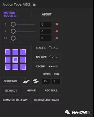 第四步:接著點(diǎn)擊Motion tools重置錨點(diǎn),放到圖層的下方,然后打開antimation-composer馬頭人腳本,添加縮放動畫,在motion tools中將便移設(shè)置為15,點(diǎn)擊亂序圖標(biāo),再點(diǎn)擊SEQUENCE排序圖標(biāo),實(shí)現(xiàn)隨機(jī)排列圖層效果。