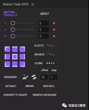 第三步:進(jìn)入AE,在AE中調(diào)整圖層到合適大小??梢源蜷_圖層,選中所有層,打開窗口-motion tools MDS插件,點(diǎn)擊EXTRACT提取,就可以把圖形中的層提取出來。