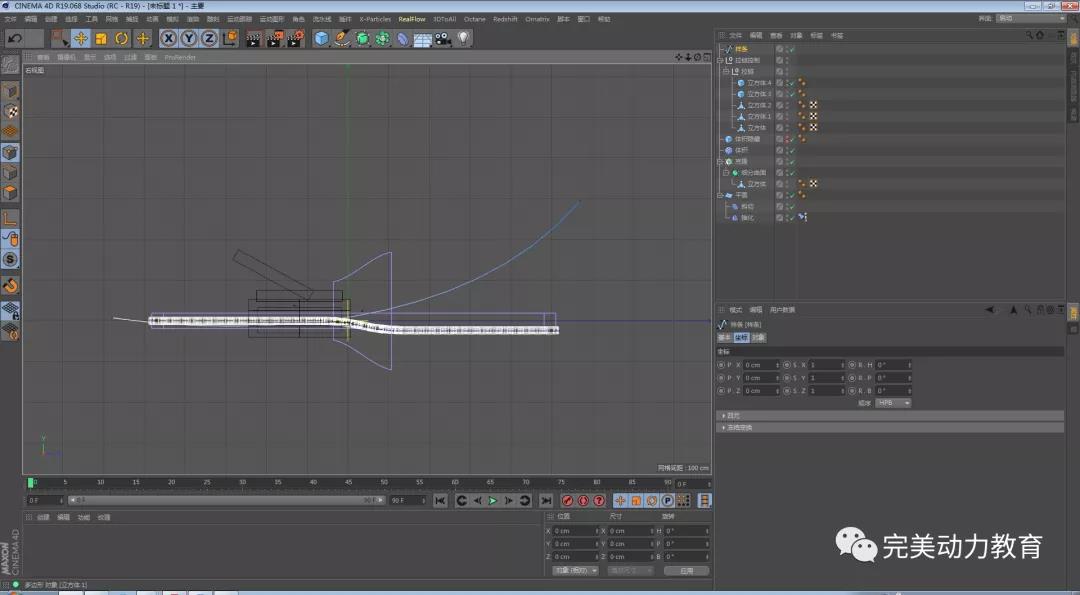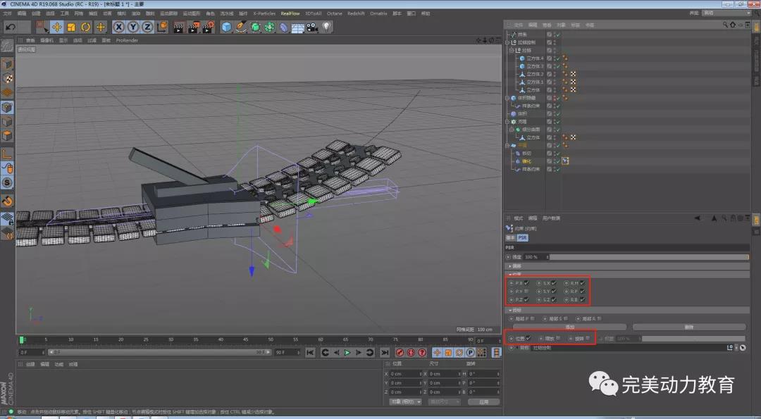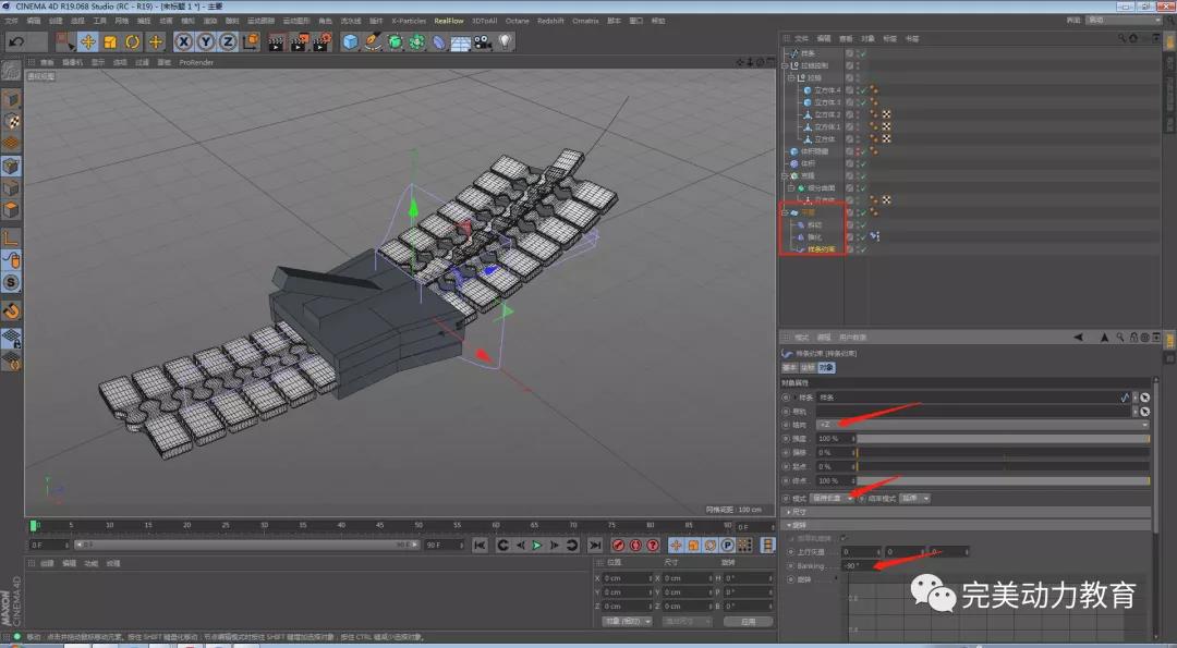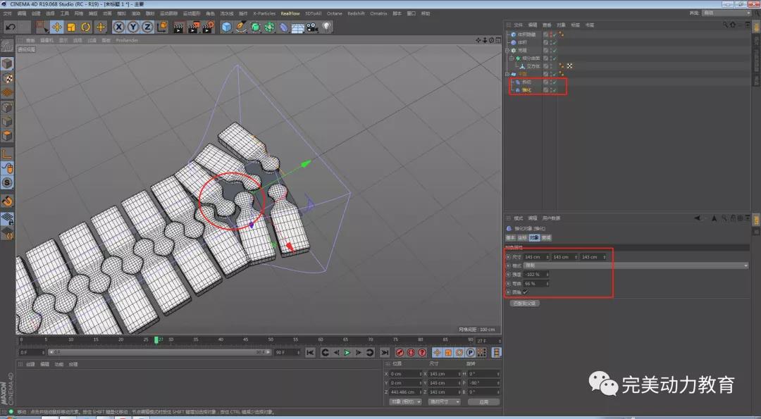 第一步:給平面添加錐化變形器調(diào)整變形器數(shù)值,拖動錐化變形器,放在斜切的下方,沿y軸方向,使齒的動畫不會有穿插。