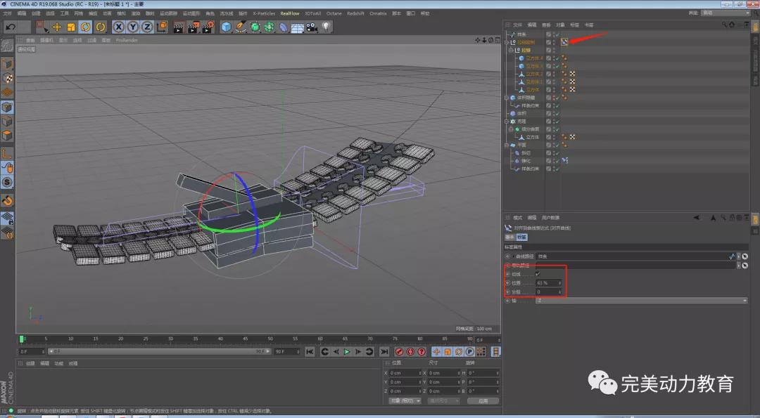 第八步:約束完以后之前用體積隱藏掉的齒又出現(xiàn)了,這時候我們需要調(diào)整體積隱藏,給體積隱藏也添加樣條約束,調(diào)整體積隱藏的分段數(shù)。